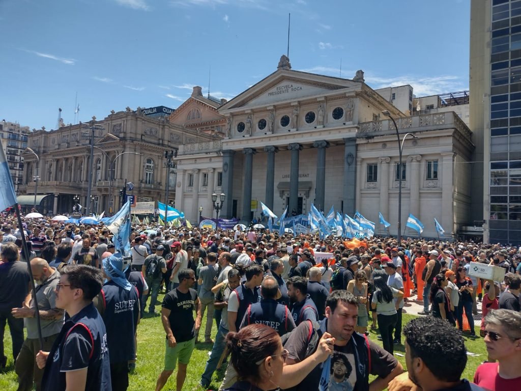 El SATSAID se movilizó este miércoles junto a la Confederación General del Trabajo (CGT) las dos Centrales de Trabajadores de la Argentina (CTA-T y CTA-A) y los movimientos sociales, a los Tribunales de Justicia de la Nación, en la Ciudad de Buenos Aires, y en distintos puntos del país, en rechazo al mega Decreto de Necesidad y Urgencia dado a conocer la semana pasada por el presidente de la Nación, Javier Milei. Con una numerosa columna de compañeros y compañeras, nuestro gremio se sumó, junto a miles de trabajadores y trabajadoras que colmaron Plaza Lavalle, a la presentación realizada ante la Justicia.