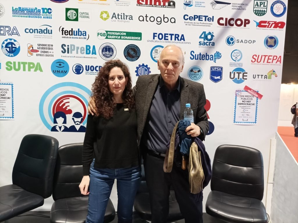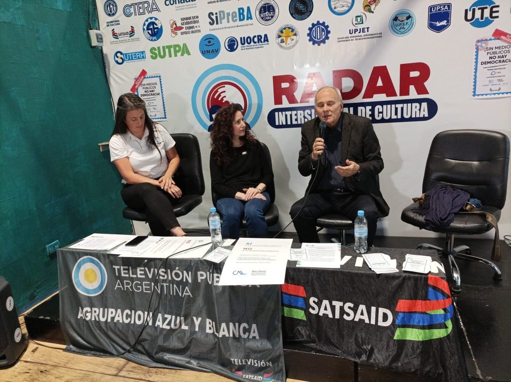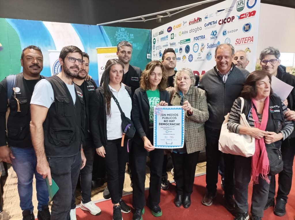 Mas tarde, el delegado del histórico Canal 7 y prosecretario de Finanzas del gremio, Darío Aguilar, acompañado por Arreceygor y Vincent, leyó un documento en defensa de los medios públicos, escrito por los trabajadores y las trabajadoras de Contenidos Públicos y de TVP, con la adhesión de la Secretaría de Cultura de la CGT y del SUTEP.