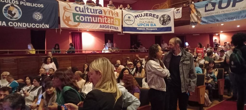 Hoy jueves, el Secretario General del SATSAID Zona II Las Flores, Fernando Diez, y miembros de la Comisión Ejecutiva de la Seccional, asistieron al Congreso Federal de Cultura y Comunicación celebrado en el emblemático Teatro Argentino de La Plata, organizado por SUTEBA, CTERA y la CTA-T.
