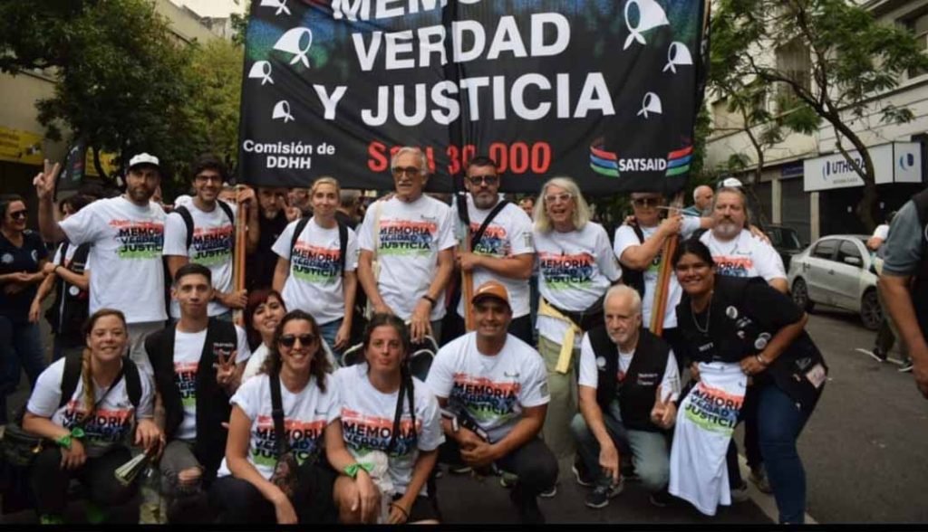 La columna de nuestro gremio, encabezada por el secretario General Horacio Arreceygor, partió de la intersección de 9 de Julio y Belgrano, colmada de miembros del Consejo Directivo Nacional, compañeros y compañeras de la Comisión de Derechos Humanos, representantes de la Comisión Ejecutiva de la Seccional La Plata y Buenos Aires Zona 2, delegados y delegadas del AMBA. Este mismo escenario fue replicado por los compañeros y compañeras del SATSAID de todas las seccionales, que estuvieron presentes en plazas multitudinarias a lo largo y a lo ancho de nuestro país.